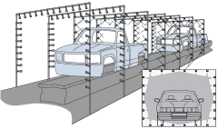 喷嘴在汽车生产线中被广泛使用。常用在车体涂装前洗净处理的雾化喷嘴、带式研磨机的冷却的 螺旋喷嘴 、盐害测试夹扣喷嘴、车身上色的自动喷涂和烘烤后的冷却,其应用覆盖整个